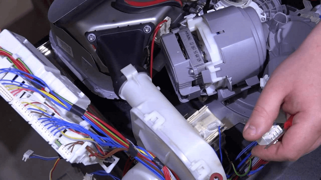- Отсутствие нагрева связывают с нагревательным элементом и проводкой. Сначала проверяем напряжение сети, достаточное ли оно, и при необходимости работаем с цепью питания и розеткой. Если дефектов не обнаружено – разбираем посудомойку и осматриваем нагреватель.